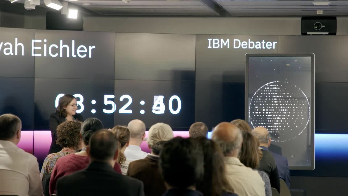 Es impresionante pensar que una IA pueda debatir con soltura a un ser humano de temas complejos inherentes a este. Pero no es una fantasía, es una realidad. Se hizo una demostración de su capacidad en un evento en San Fráncico. Teniendo como oponentes a dos expertos en oratoria. Noa Ovadia, experta en debates y campeona en ese campo en Israel, en el pasado año 2016, y al también israelí Dan Zafrir, conocido polemista hebreo.