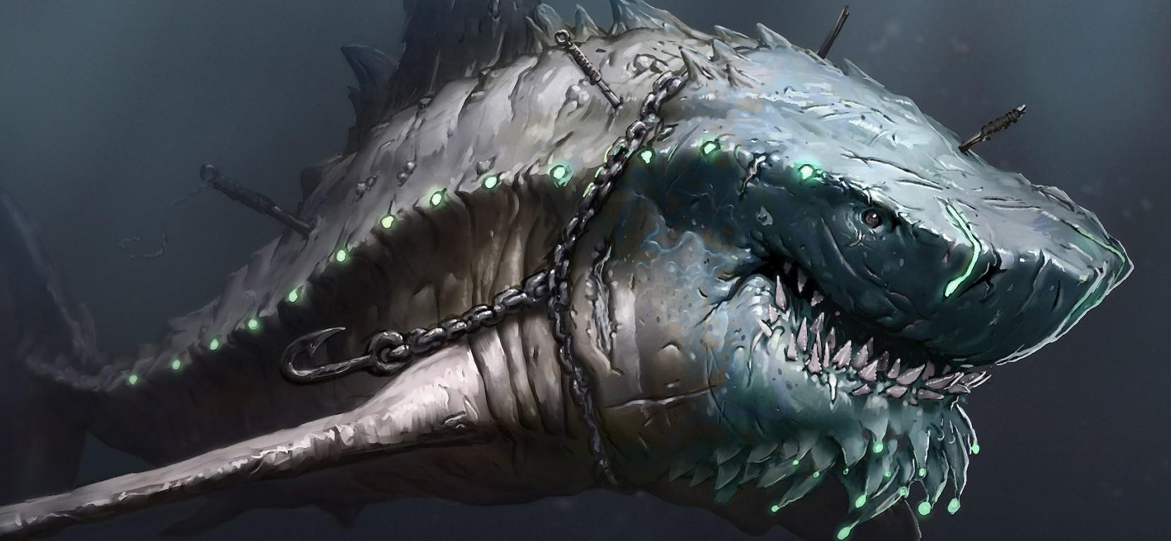 Imagen generada por computadora de la apariencia del Carcharodon megalodon. Imagen: DevianArt.
