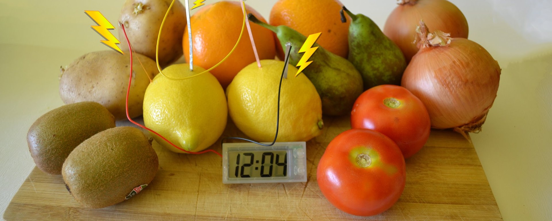 Destaquemos aquí un experimento en particular, el cual suele hacerse con limones, uno de los cítricos que permite una conductividad eléctrica muy bien trabajada. La «batería de fruta» es un experimento muy básico que demuestra cómo cambiar la energía química a energía eléctrica, lo que se logra al convertir el limón en una batería de tipo voltaica.