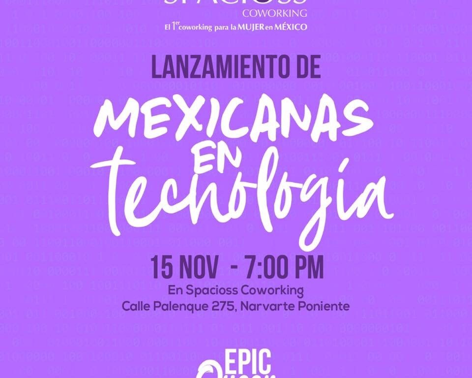 Spacioss Coworking, el primer espacio de trabajo para la mujer en México, será el lugar de encuentro para el Lanzamiento de Mujeres en Tecnología, el jueves 15 de Noviembre del 2018, a las 7 pm hora centro de México.