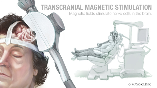 2.- Estimulación magnética transcraneana: Es una técnica para estudiar la función de varias partes del cerebro. Una bobina colocada en la cabeza del sujeto transporta corriente eléctrica variable que genera un campo magnético, igual variable. Este campo activa la actividad eléctrica en la región del cerebro que se encuentra bajo la bobina. Observando cómo responde el paciente a la estimulación (por ejemplo, los músculos que mueve al estimularse cierta parte del cerebro), el médico puede conocer diversas condiciones neurológicas.