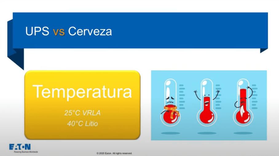 Como en la cerveza la temperatura es importante, a nadie nos gusta consumirla caliente o quemada. En los UPS las baterías tienen un limite de 25 °C y si esta pasa del margen nuestra duración disminuye.