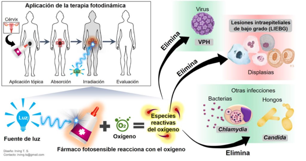 Existe un campo de estas ciencias llamado Biofotónica, el cual busca estudiar las aplicaciones de la luz en el área biológica y médica a fin de conocer cómo algunos procesos orgánicos se ven afectados por la radiación electromagnética; así como diagnosticar y tratar ciertas enfermedades. Una de las aplicaciones más interesantes, para mí, es la «Terapia Fotodinámica«, la cual llamaremos TFD. Esta terapia es un tratamiento que utilza un tres componentes no tóxicos, pero que juntos se vuelven dañinos para las celulas: un químico llamado «fotosensibilizador», el cual llamaremos FS, un tipo particular de luz y una buena oxigena ción del tejido a tratar. Cuando los FS son expuestos a una longitud de onda de luz específica, producen especies reactivas de oxígeno, las cuales son dañinas para las celulas y con esto se consiguen eliminar.