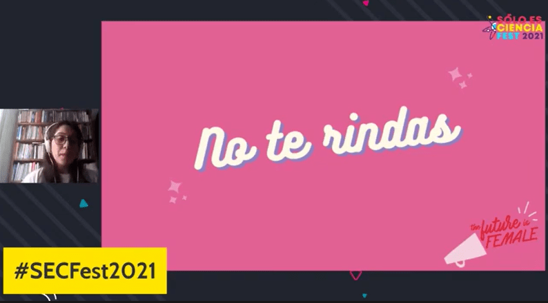 «Mujeres Chingonas» por Liz Orozco fue la siguiente conferencia. Nos habló de la importancia de romper la brecha de género resaltando el porcentaje de mujeres que se dedican a la ciencia, así como algunos ejemplos históricos de científicas de quienes han menospreciado sus hallazgos por el hecho de ser mujer.