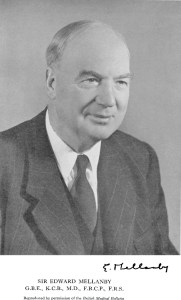 Edward Mellanby (1884-1955) fue un hombre de ciencia británico que estudió acerca de los problemas de deficiencia vitamínica que terminarían derivando en su hallazgo de las bondades de la vitamina D en el cuerpo. El problema más notorio es la enfermedad llamada raquitismo*, la cual afecta a los huesos, principalmente en los niños e infantes.