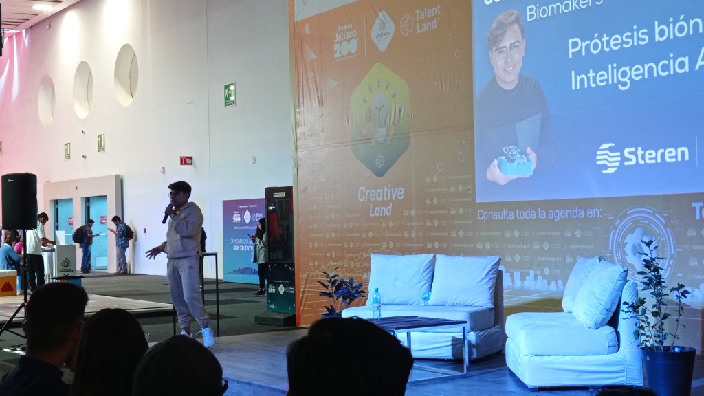 Durante el Talent Land 2023, estuvo presente Jonathan López, fundador de Biomakers, quien nos habló acerca de las prótesis biónicas, que es un aparato artificial que simula el funcionamiento de una mano humana. Se utilizan como herramientas para las personas que lo necesitan, ya sea porque les falta alguna mano o parte de, o también para el desarrollo de IA (Inteligencia Artificial).