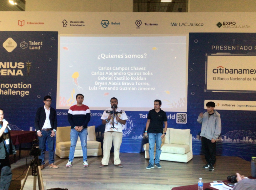 El segundo lugar fue para Custom Robotics, con su proyecto Aquascan, que muy similar al de arriba, desarrollaron un dron para monitorear la calidad del agua enfocados en la contaminación minera en Zacatecas. Se ganaron también dos controles y un dron, útil para continuar con su proyecto.