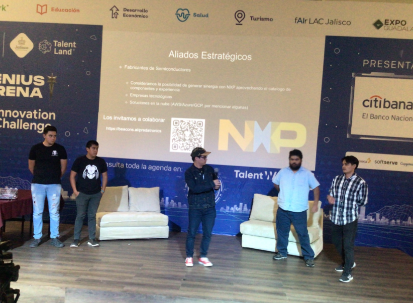 NXP Semiconductors N.V. es una empresa hoandesa de diseño y fabricación de semiconductores. Este año fue su primera participación como retadores, jueces y premiadores del hachathon de robótica en la Genius Arena Innovation Challenge cuyo objetivo era presentar un proyecto que trabajara por alguno de los ODS, como el 3: Salud y Bienestar; 6: Agua limpia y saneamiento; y 9: Industria, Innovación e Infraestructura.